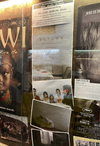 Zu diesem Anlass organisierte Gerd Guntermann in Kooperation mit dem Gloria Kino Heidelberg und der Heidelberger Amnesty Hochschulgruppe eine Vorführung des Filmes “Wiederkehr” (im engl. “Return”) der Filmemacherin Katja Fedulova mit anschließendem Q&A mit der digital zugeschalteten Regisseurin.
